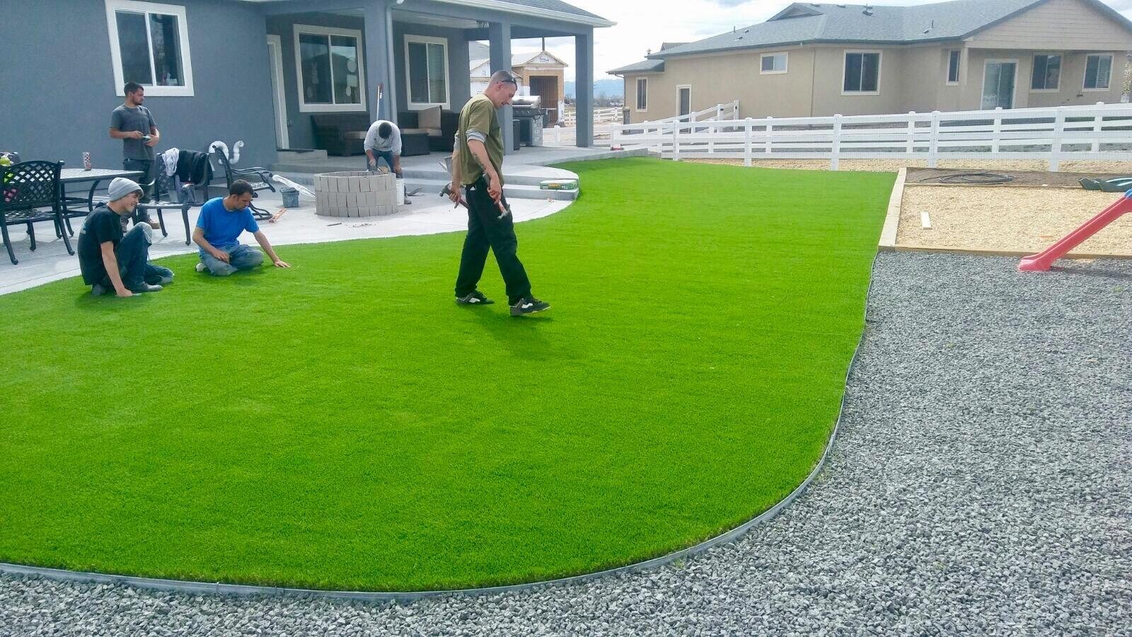 Plan for drainage: Ensure your yard slopes slightly or install a drainage system to prevent water pooling under the turf.